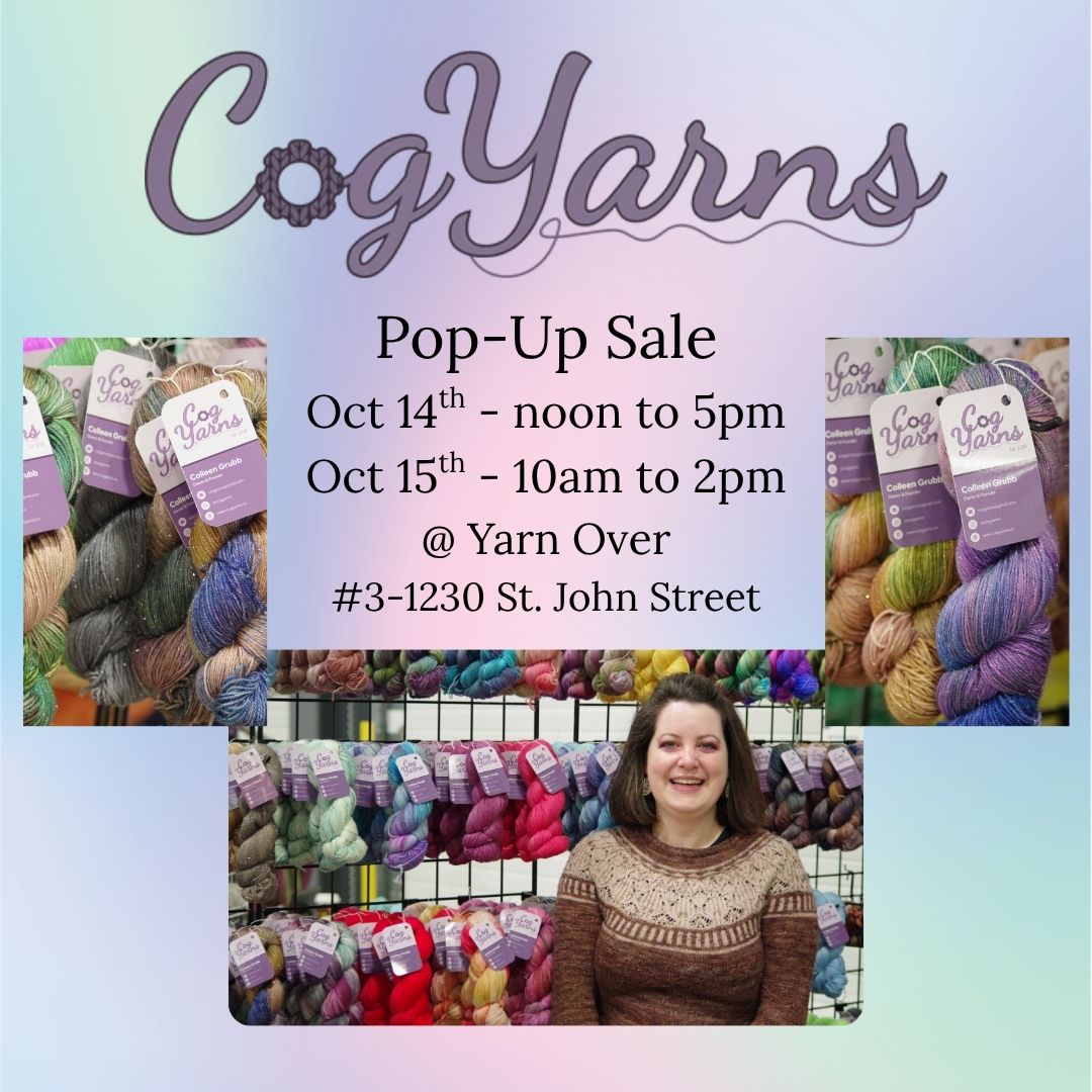 Come visit Cog Yarns on Nov 14th and 15th at Yarn Over. Shop from a local Regina hand dyer.