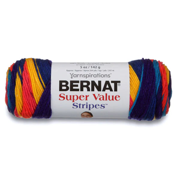 Bernat Super Value yarn is an economical, worsted weight yarn in a huge shade range. Available in solid and multi-colored shades, from brights, to neutrals, Super Value fits the needs of any knit or crochet project. Conveniently machine washable and dryable for easy care.