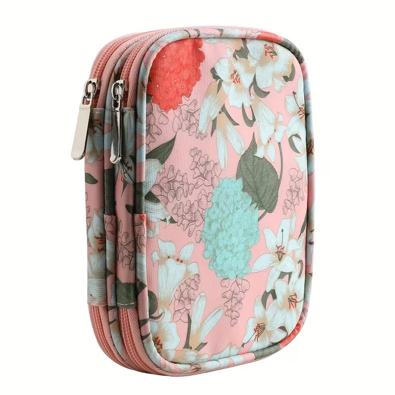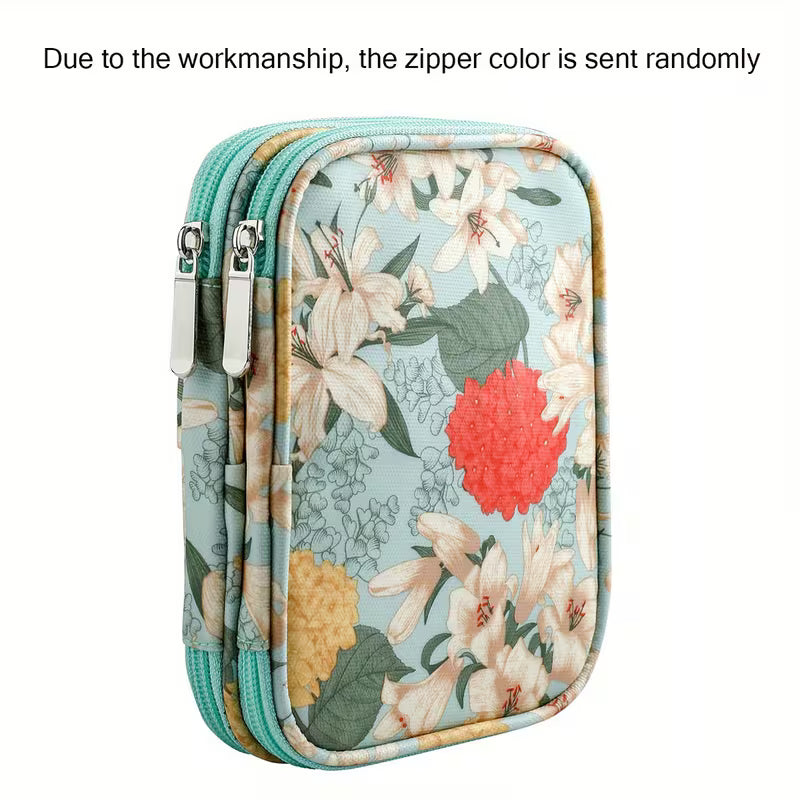 - Storage case for crochet needles and accessories is made of water-resistant cloth.
