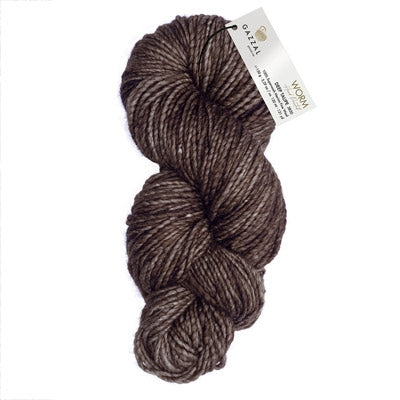 Worm is a delightfully textured hand-dyed yarn which consists of two thick plies and two thread-like strands, giving it a unique appearance for quick and bulky projects.