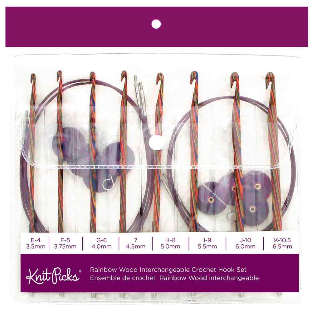 KNIT PICKS Interchangeable Rainbow Wood Tunisian Crochet Hook Set - 15cm (6″) - 8 pcs.